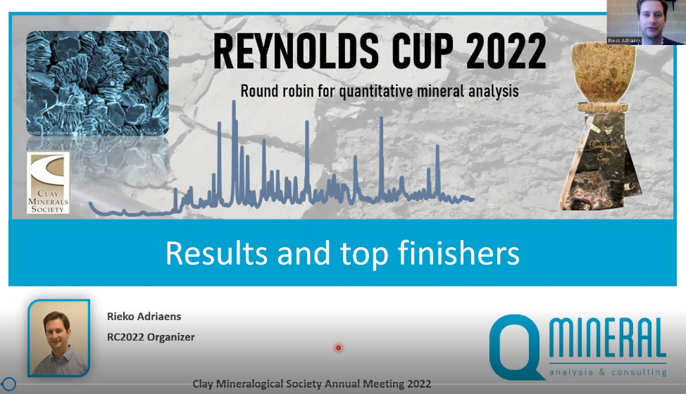 The 2022 Reynolds Cup was organized by Rieko Adriaens and Gilles Mertens of Qmineral Analysis & Consulting. The Clay Minerals Society and the Deutsche Ton- und Tonmineralgruppe e.V. (DTTG) are acknowledged for direct financial support. The Royal Belgian Institute of Natural Sciences is acknowledged for in-kind contributions of minerals.