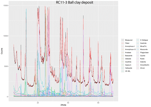 For RC3-11, one of the most pleasing aspects of the fitting was the accurate determinations of both kaolinite and halloysite; pleasing, because this task still proves to be a difficult area for industry when both are present in the same sample.