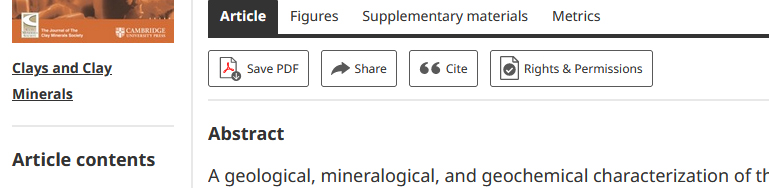 The Clay Minerals Society (CMS) owns the copyright on all material published in Clays and Clay Minerals, and The Clay Minerals Society Workshop Volumes. Works prepared by U.S. government employees in the course of their work are in the public domain and are not copyrighted by CMS.